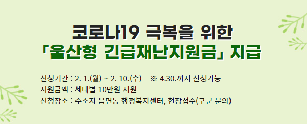 신청 대상은 2021년 2월 1일을 기준으로 울산광역시내에 주민등록을 두고 있는 세대 모두에게 지급됩니다.